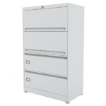 Sistema de cierre general con chapa de seguridad al centro. Incluye en las gavetas de archivo el sistema de cierre una
