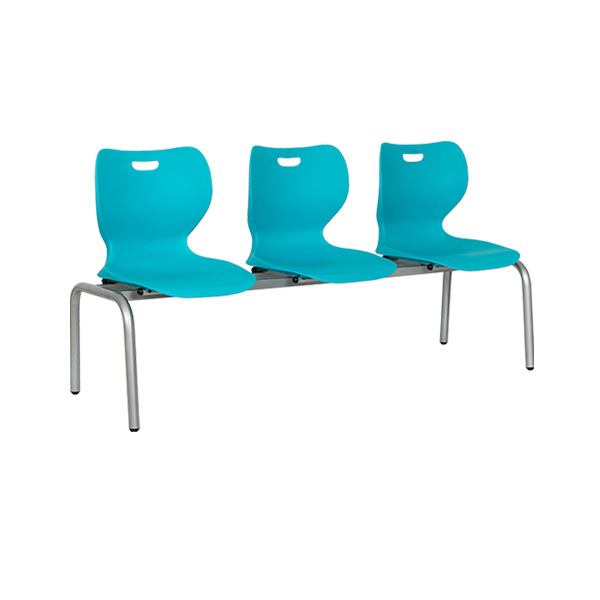 Estructura metálica, patas en tubo redondo de 1¼” enb cal. 16, larguero rectangular de 1¼”x3/4″, en cal. 16, base de asientos en tubo de 7/8″ (redondo) y 3/4″ (cuadrado), terminado en pintura epoxica texturizada en colores negro y/o aluminio, tapon bola de 1¼” para evitar rayaduras en piso y tapon bola de 7/8″ en asientos.