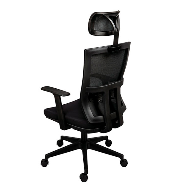 - Respaldo y Cabecera tapizado en malla con soporte lumbar ajustable en altura