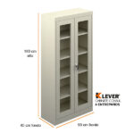 - PUERTAS:Fabricada en lamina rolada en frio calibre 22, frentes en acrílico transparente, con perforaciones para recepción de chapa. Medidas de 40.5 de ancho y 164.4 de alto.